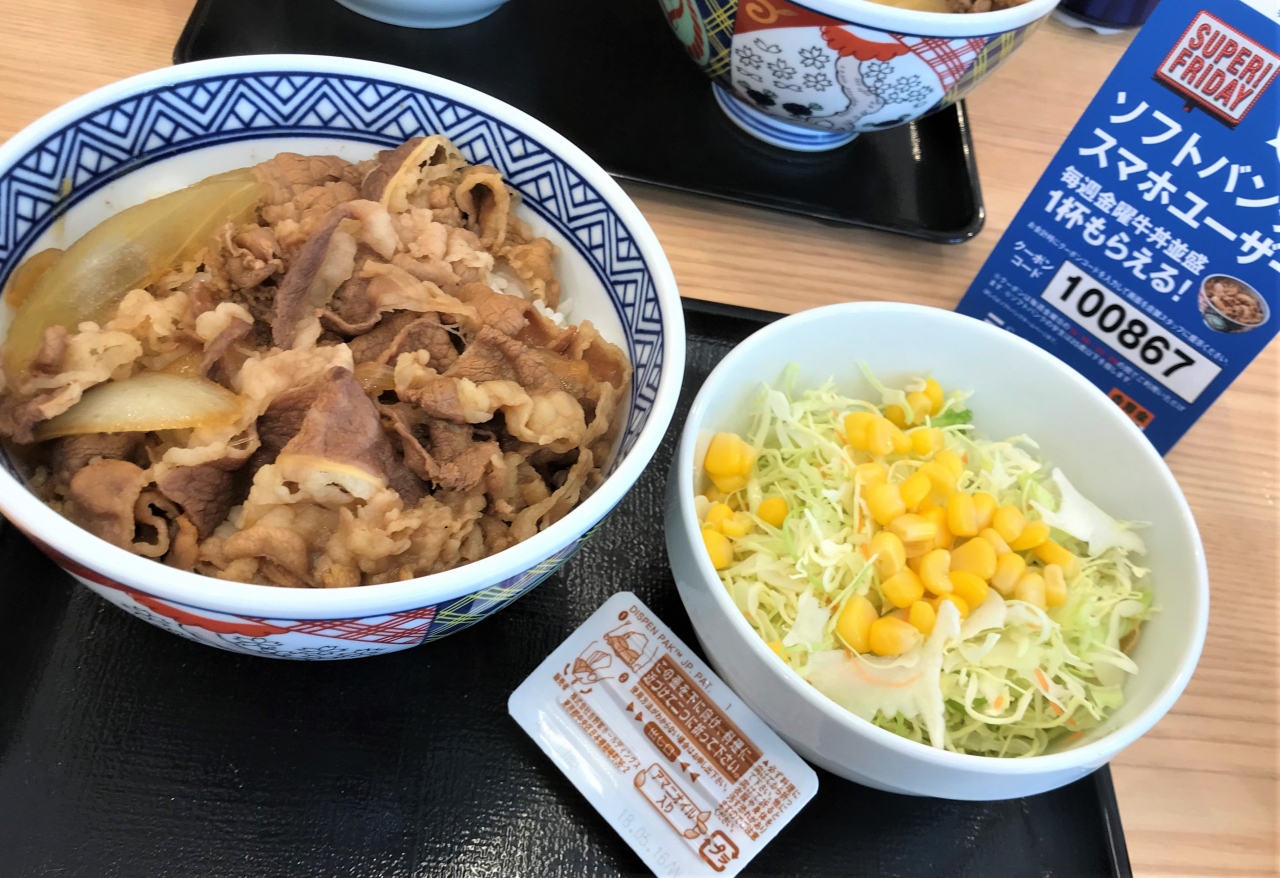 スーパーフライデーで某携帯会社から「牛丼並盛1ケ」もらえるクーポンが送られてきたので、初めて利用しました。因みに学生は2ケです!!
