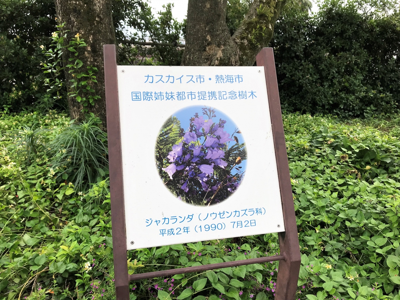 熱海のジャカランダのはじまりは1990年(平成2年)。国際姉妹都市であるポルトガルのカスカイス市から贈られた2本の木からだそうで、今や100本にもなっているそうです。