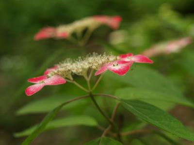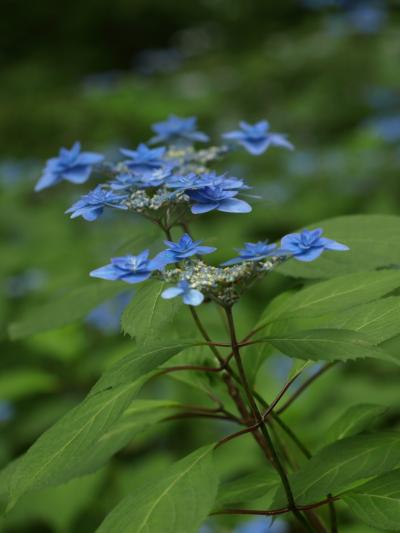 園内にはアジサイが18品種約1000株あり、6月上旬現在ではヤマアジサイ系統の「和のあじさい」が見頃となっています。