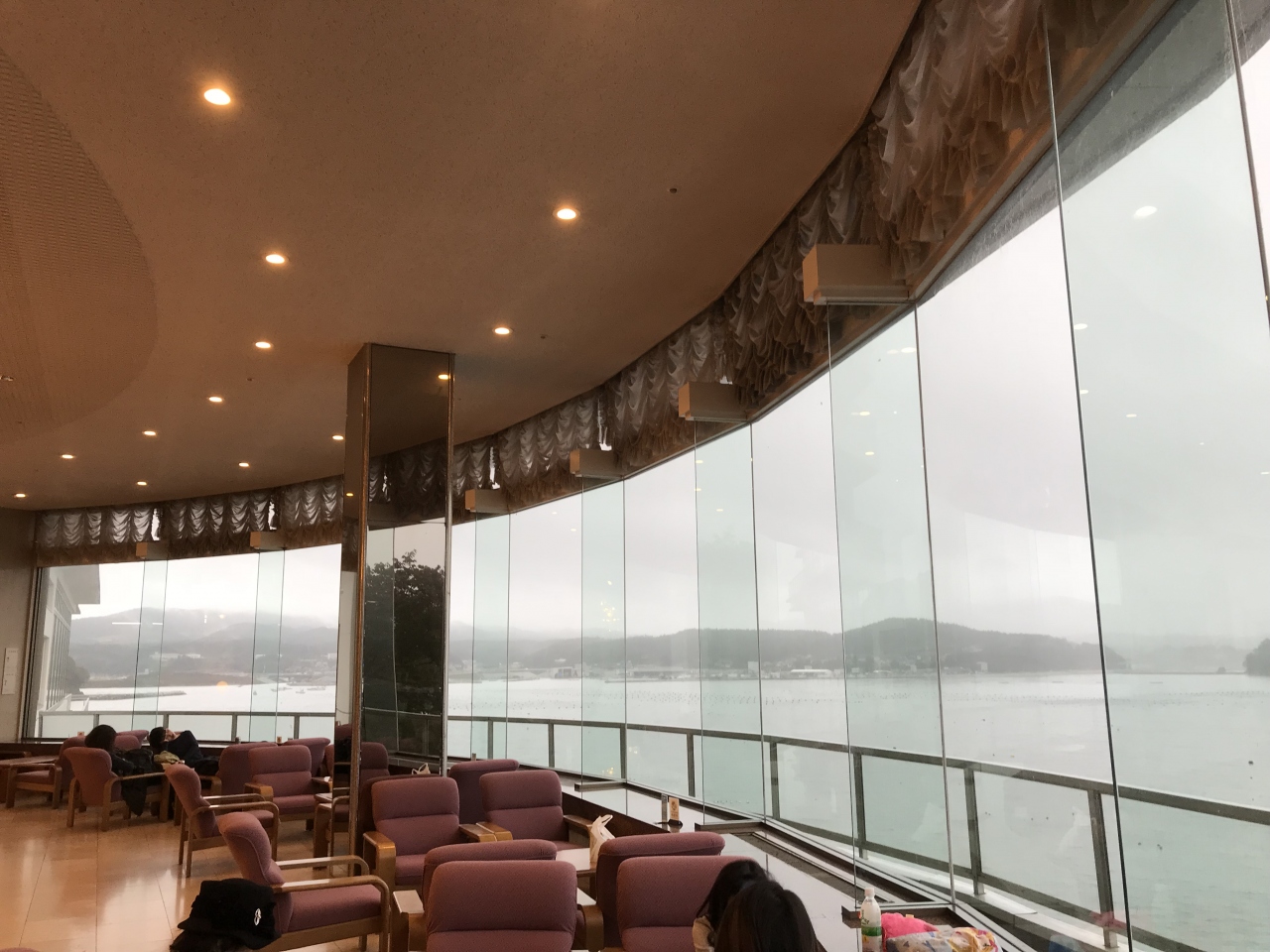 あいにく台風接近という予報で、海の見晴らしが悪く、帰路の不安もあって翌朝は10時の送迎バスでまっしぐらに仙台へ向かったので、辺りを散策したり出来ず、とても残念でした。