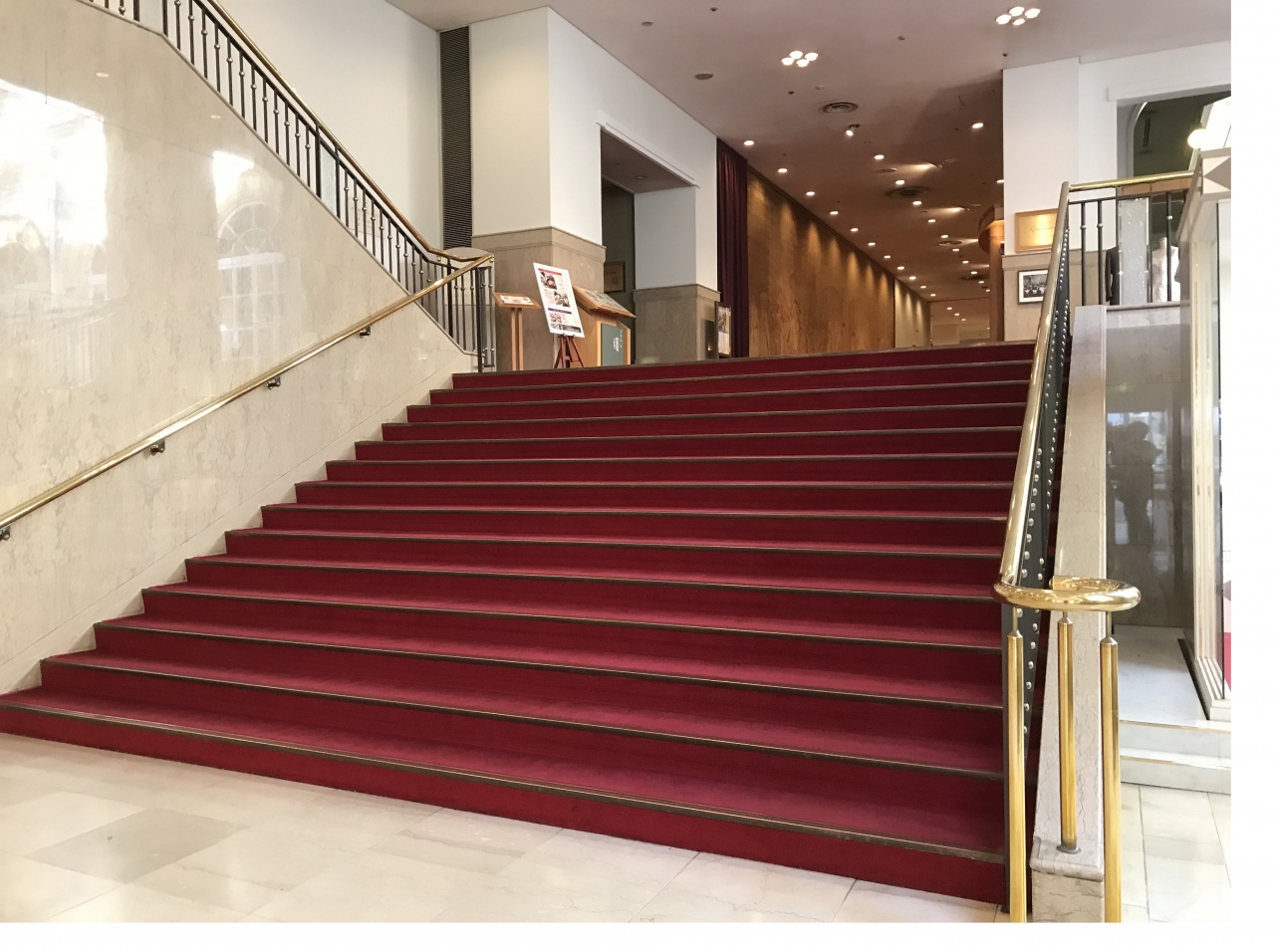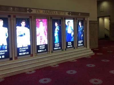 お土産コーナーでは、クッキーなどの箱の包みが、その時開催されている歌劇に合わせた絵柄になっていたりします。ロビーや廊下には歌劇団のポスターや等身大の写真などなど、といった具合です。