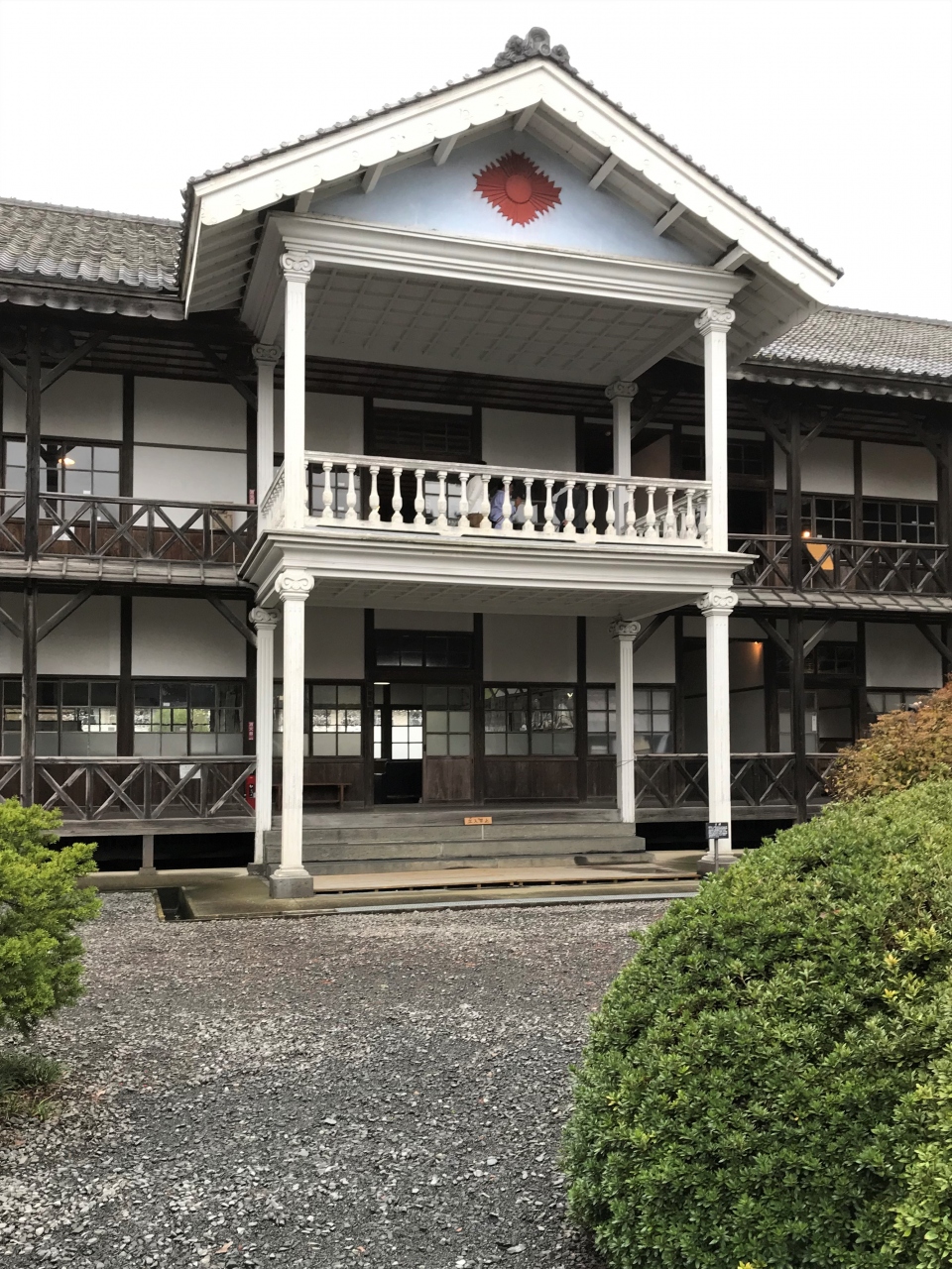 コの字型に建てられた校舎の正面玄関の上は素敵なバルコニーになっていて、和洋折衷のなかなか見事な建物です。因みに、この建物は1981年に国の重要文化財に指定されたそうです。