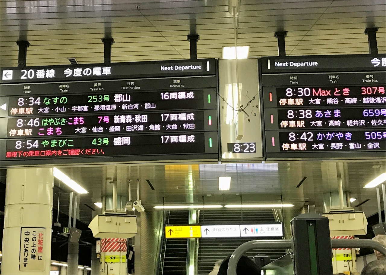 新幹線で言えば東北新幹線(はやて・やまびこ)東北新幹線経由で山形(つばさ)、秋田(こまち)、北海道(はやぶさ)、上越(とき)、北陸(かがやき)の各新幹線が乗り入れているといいますから、それだけみてもこの駅の利用者たるや相当なものといえそうです。