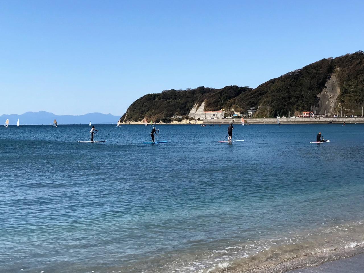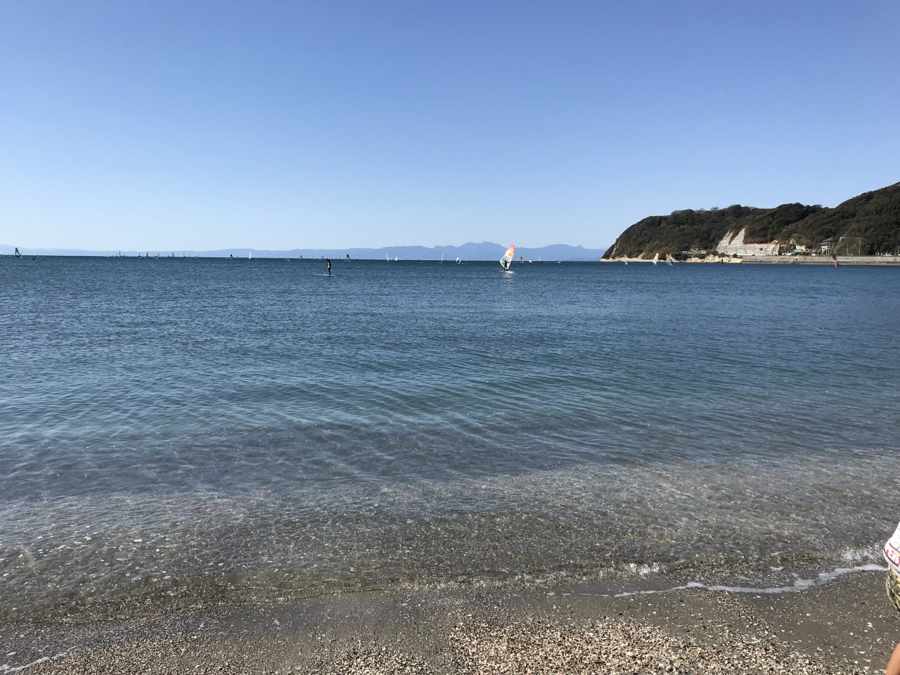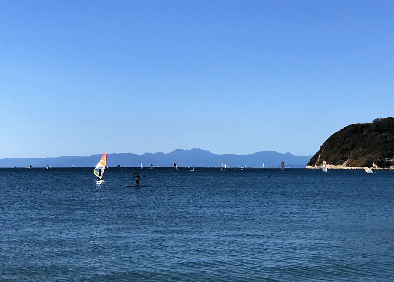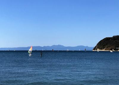 お天気が良く暖か。日曜日とあって、海にはウインドサーフィンやサップを楽しむ人が大勢繰り出していました。なんと泳ぐ人さえいました!!