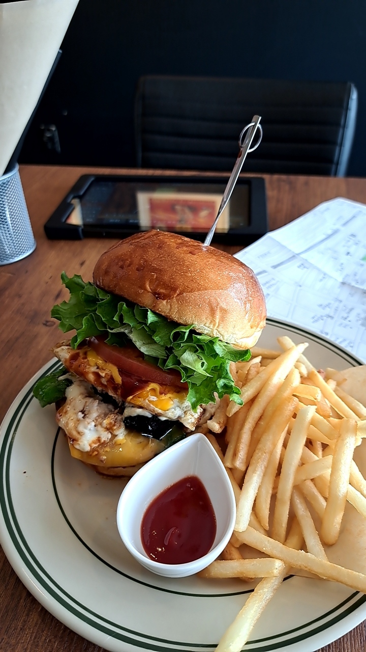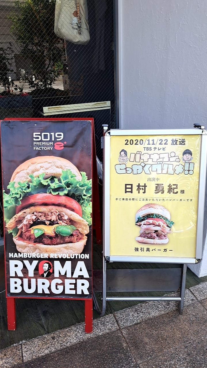 今回初めての利用で、しかもメニューは沢山の種類のバーガーがあったので、店員のお姉さんにおススメを確認すると「龍馬バーガー」だとか。