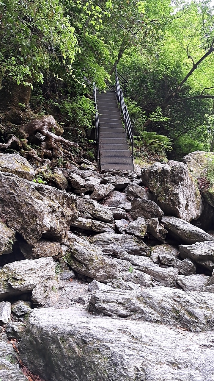なお、淵までは、急で長い階段を利用する必要があり、また、淵の周りは岩だらけなので、体力も必要です。