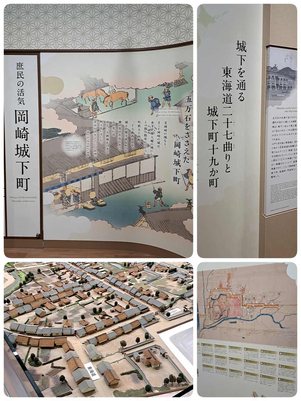 2階は岡崎城に関わる展示、3階は城下町に関わる展示、4階は岡崎城シアターといって、床面に投影された現在の地図から、過去の城郭・城下町を映像と音響で体感できるようになってます。