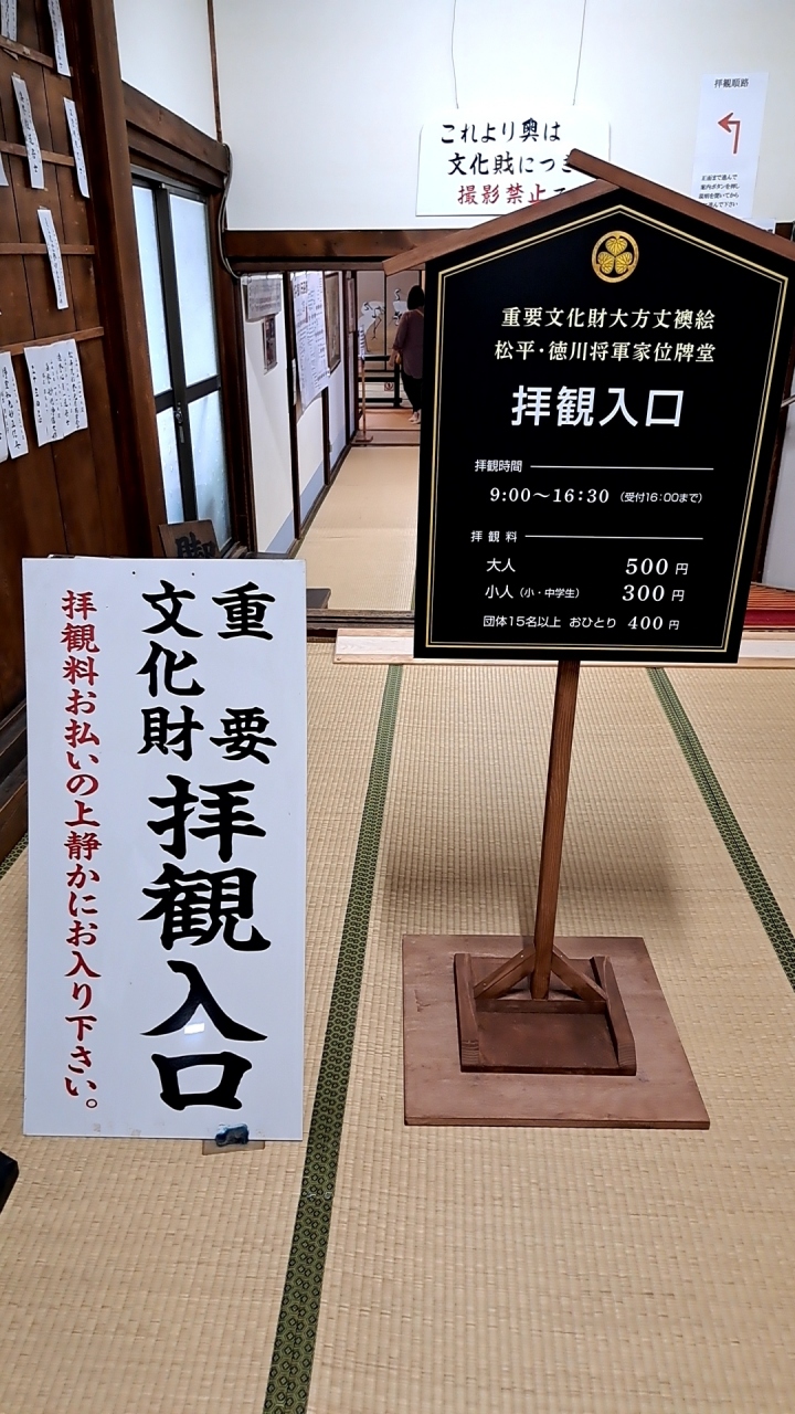 本堂の中から「宝物殿」の入口があります。入館料は大人500円。私は「家康公周遊きっぷ」を購入していたので、その割引券で400円になりました。
