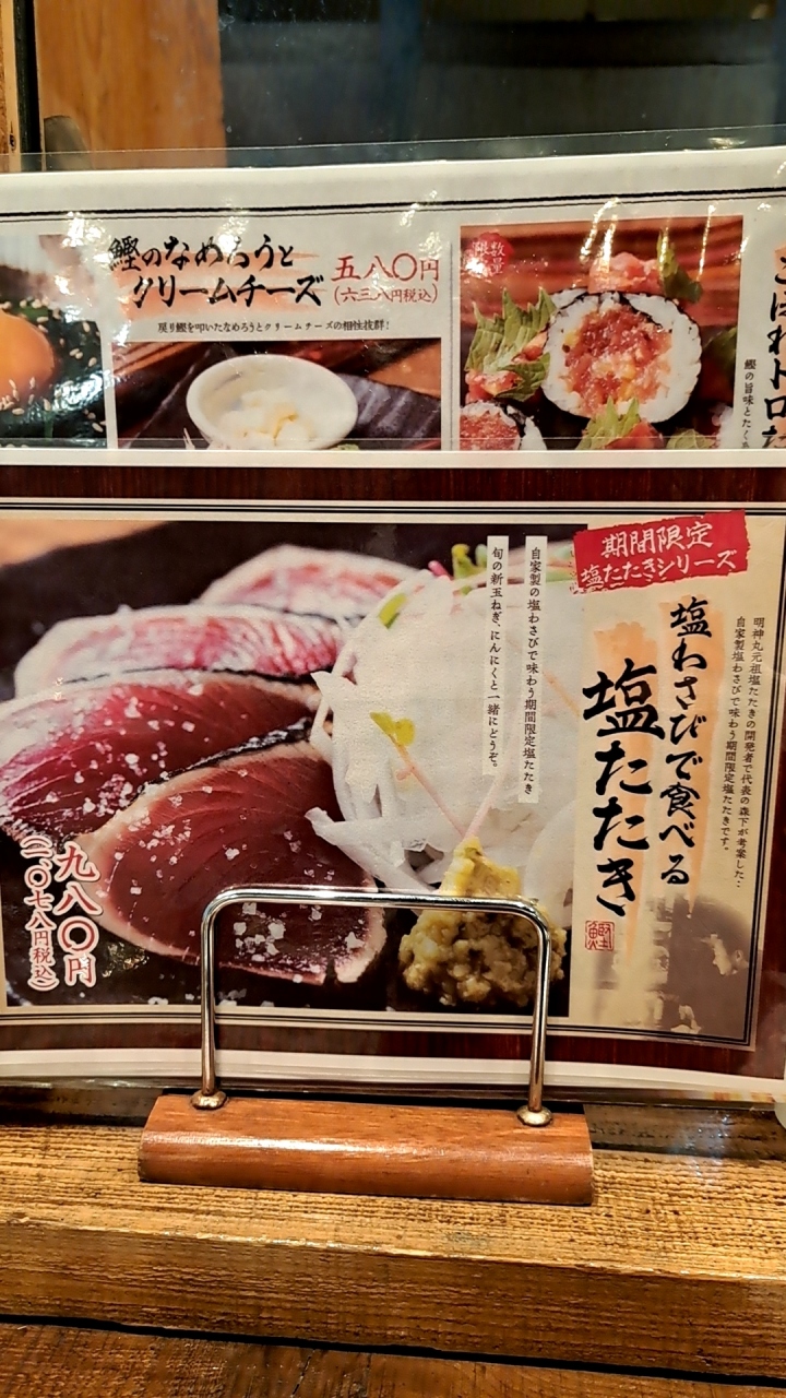 本当は別の店を予定していたのですが、満席で追い出され、、、「ひろめ市場」に行くも、日曜の夜なんで客がいっぱい、、、