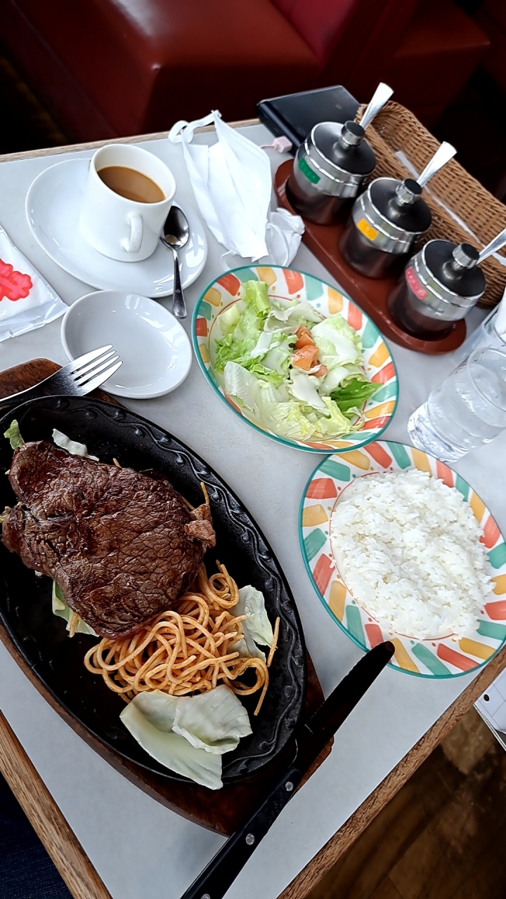ランチメニューは充実してます。やはり、看板メニューの「ステーキランチ(200g)」(1,390円)を注文。お肉は柔らかくて美味い。ステーキソースもお肉のおいしさを引き立ててます。