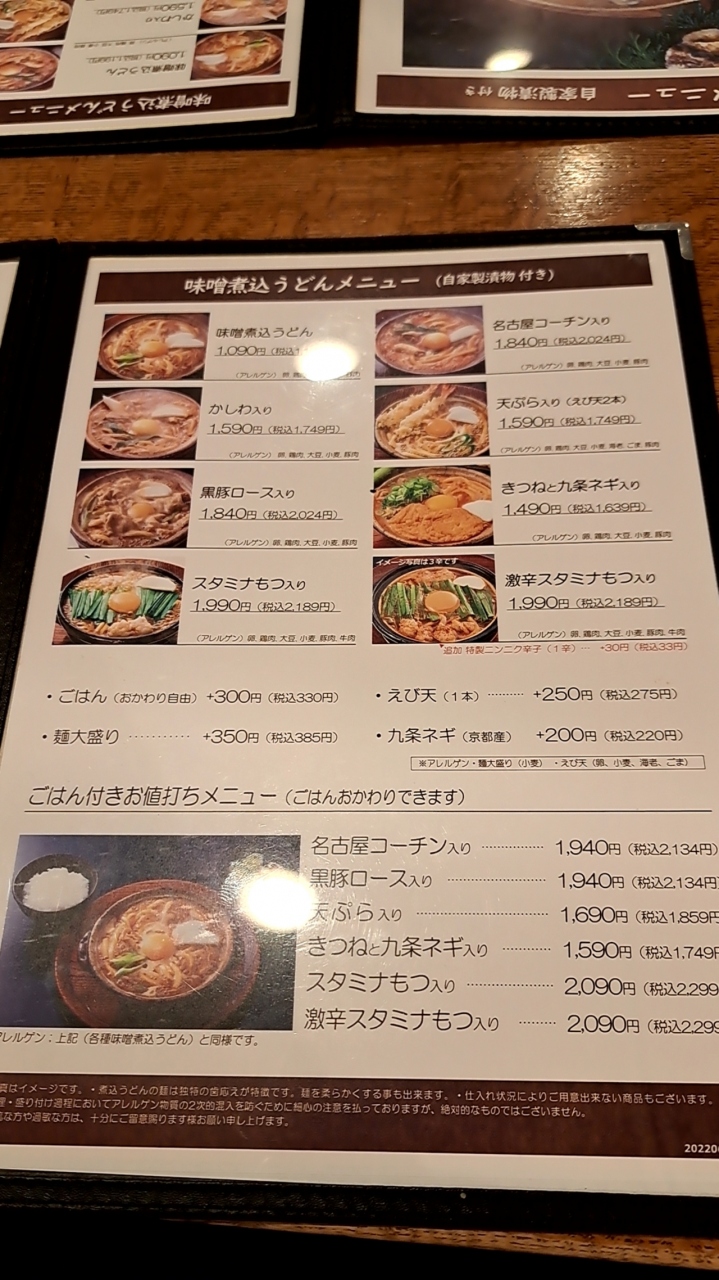 「きつねと九条ネギ入りの味噌煮込みうどん」を注文。ごはん付き1,740円也。