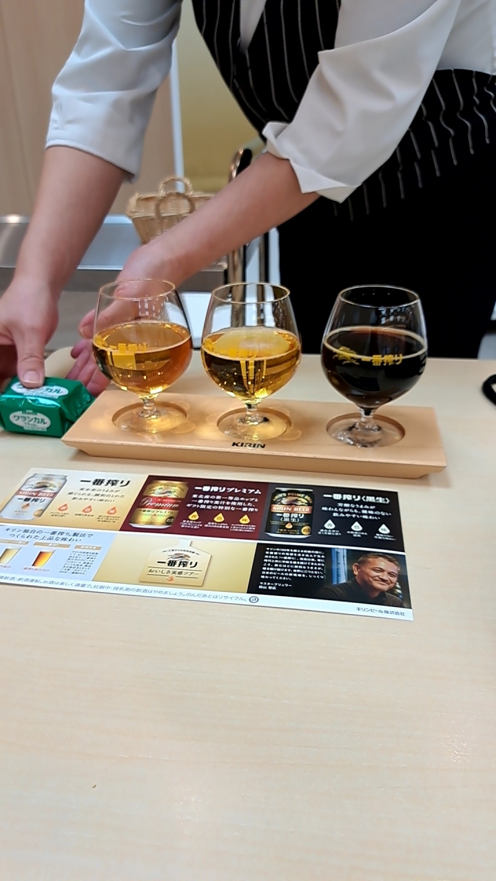 ツアー後、一番搾りの生ビールと、一番搾りシリーズの飲み比べもできて、有料でしたが、コスパ的には全然問題なしです。