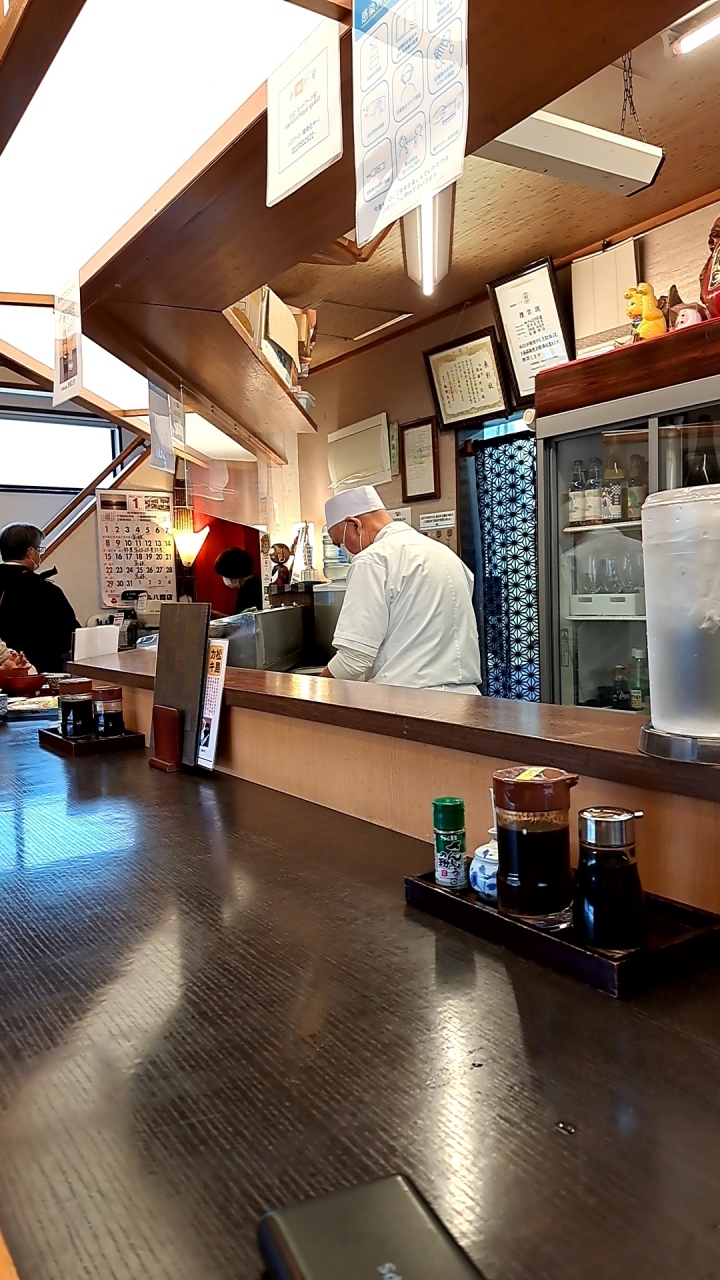 結局待つこと1時間ちょい。何度も心が折れそうになったが、、、何とかカウンター席に着席。
