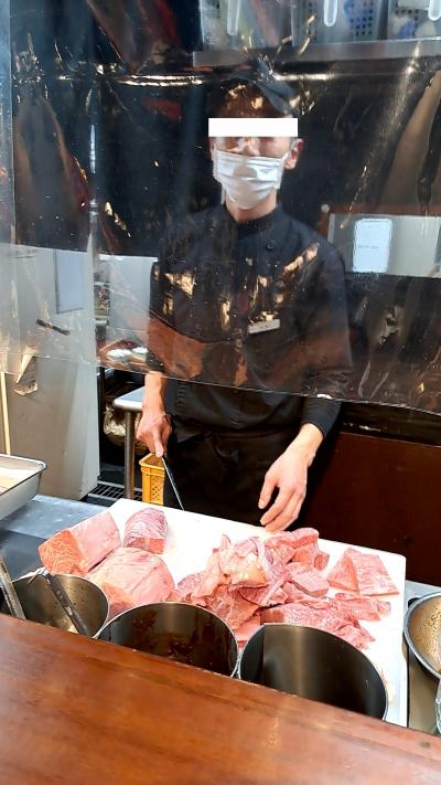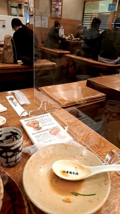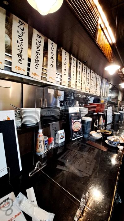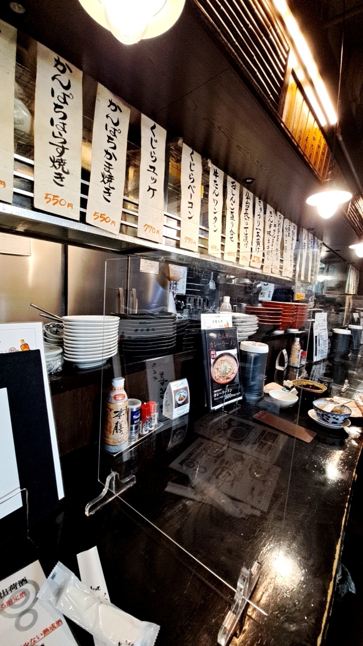 店内のカウンター席を見ると、どう見ても過剰なディスタンスをとってます。今時、ここまで過剰な対策してる店は関西ではないと思う、、、