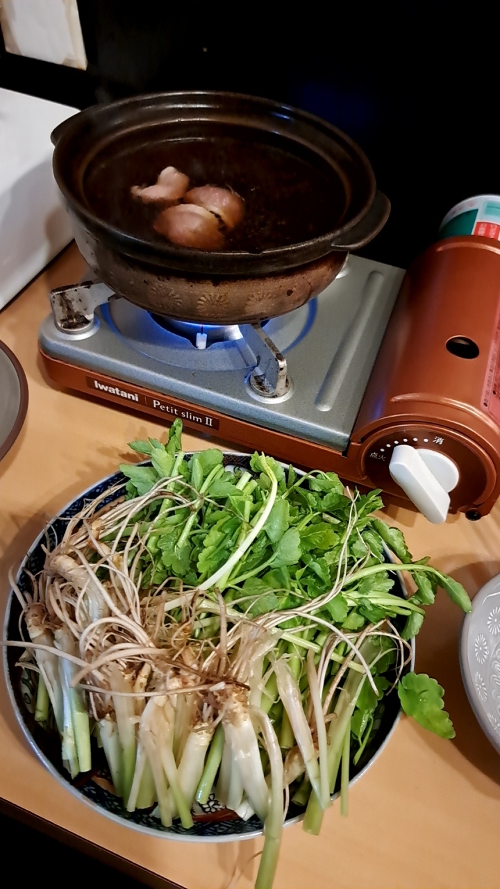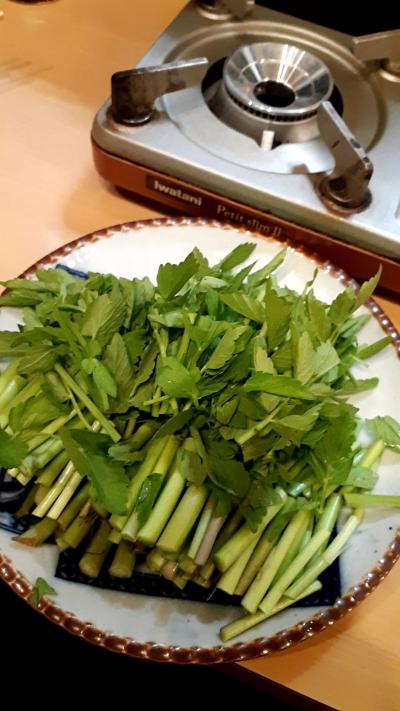 本命のせり鍋は、前回の写真と比べて全然違います。根っこもシャキシャキとして美味い。やはりシーズン中にリベンジを果たせて満足です。