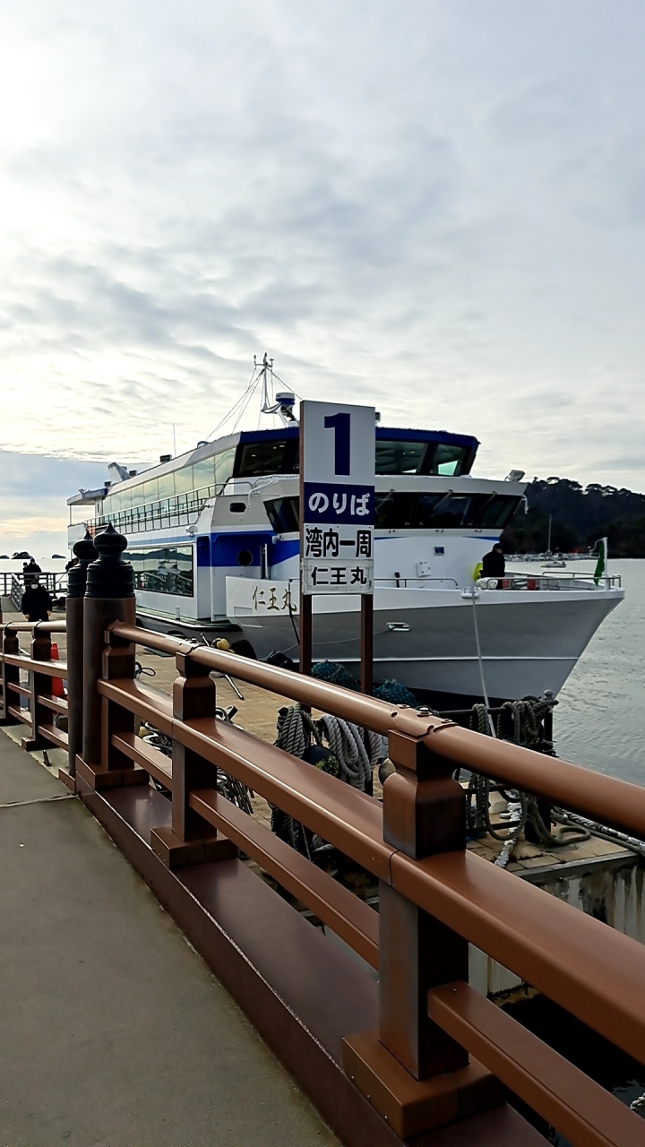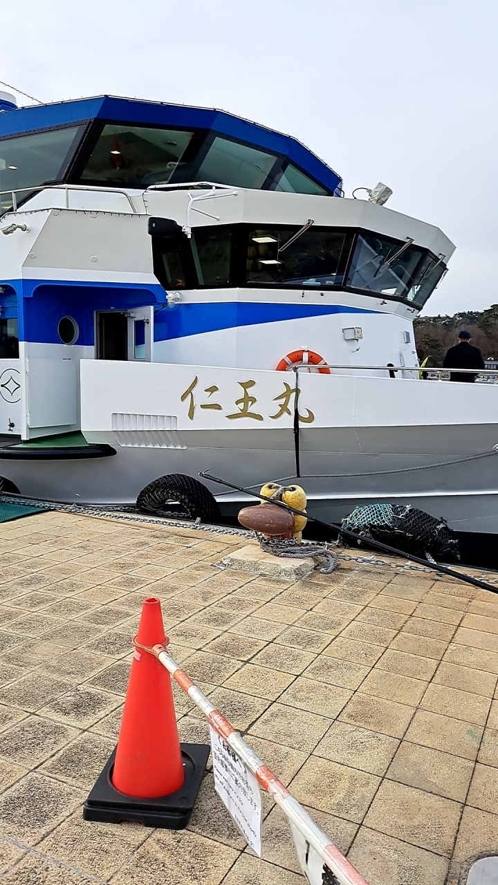松島島巡り観光船はいくつかあるようですが、たまたま事前にネットで見つけた「仁王丸」のHPにて事前予約しておきました。