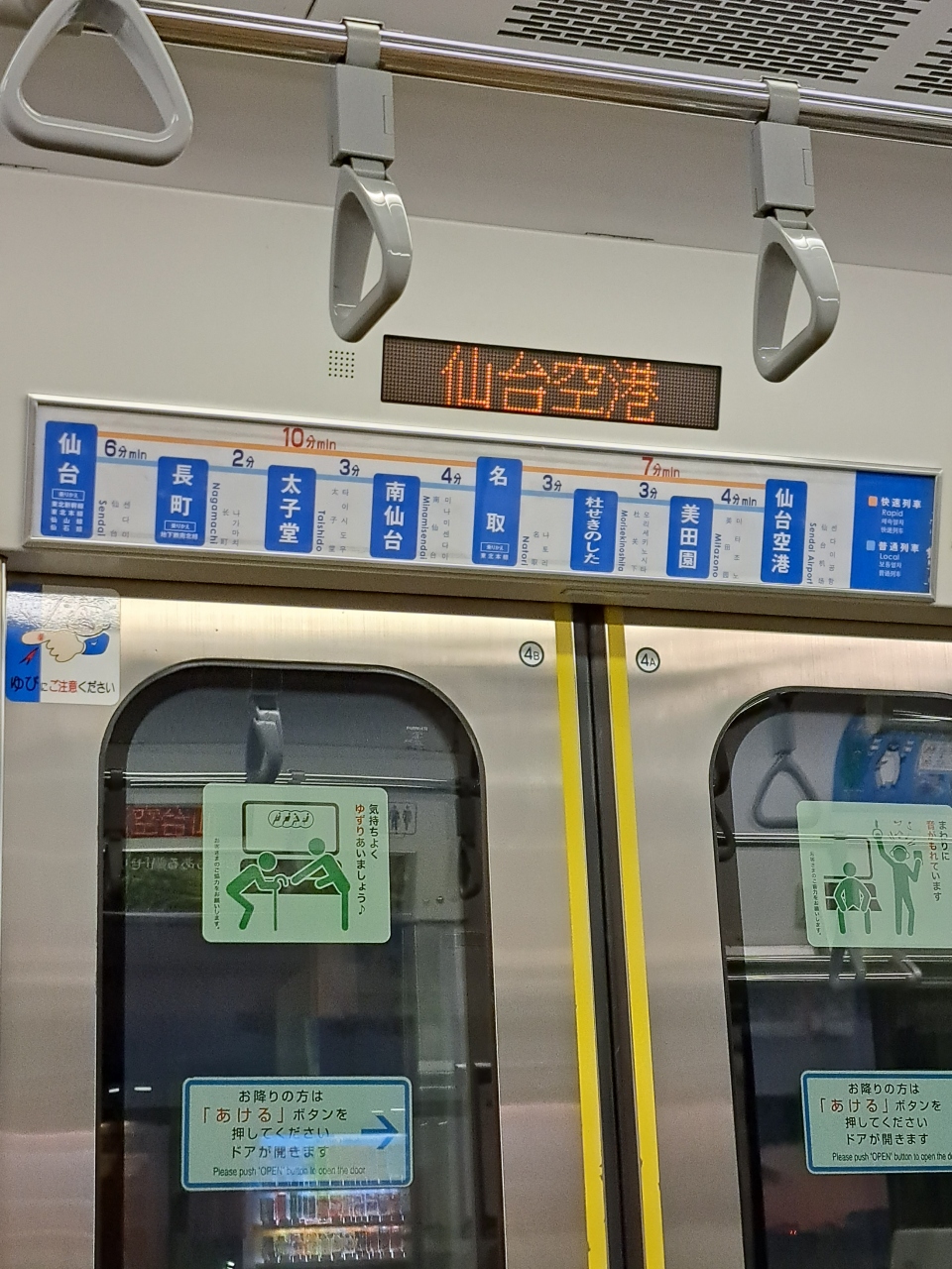それにしても、ダイヤをうまく組まれているので、本数もそこそこありますし、仙台空港と仙台市内まで距離は結構ありますが、30分弱で移動できるのは大変便利です。