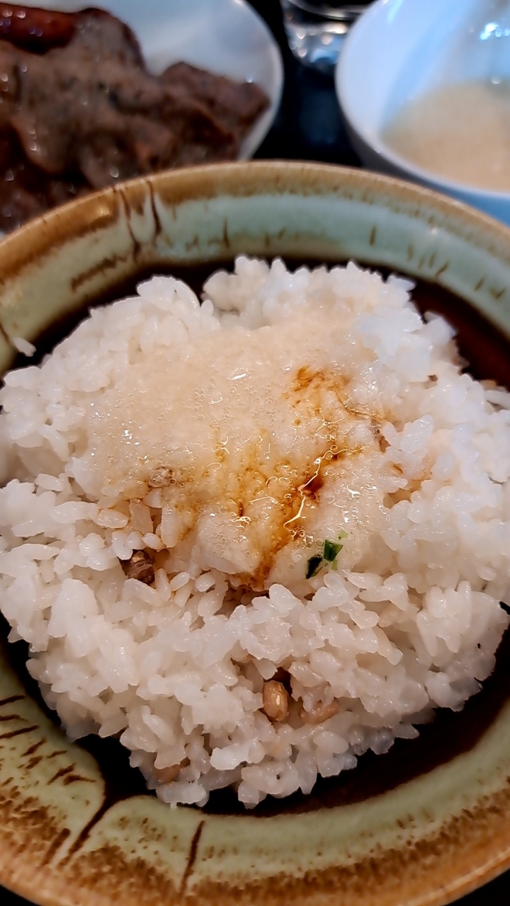 丸たん定食がリーズナブル。4枚定食:1,500円を注文。麦飯は1回お代わりサービスでした。