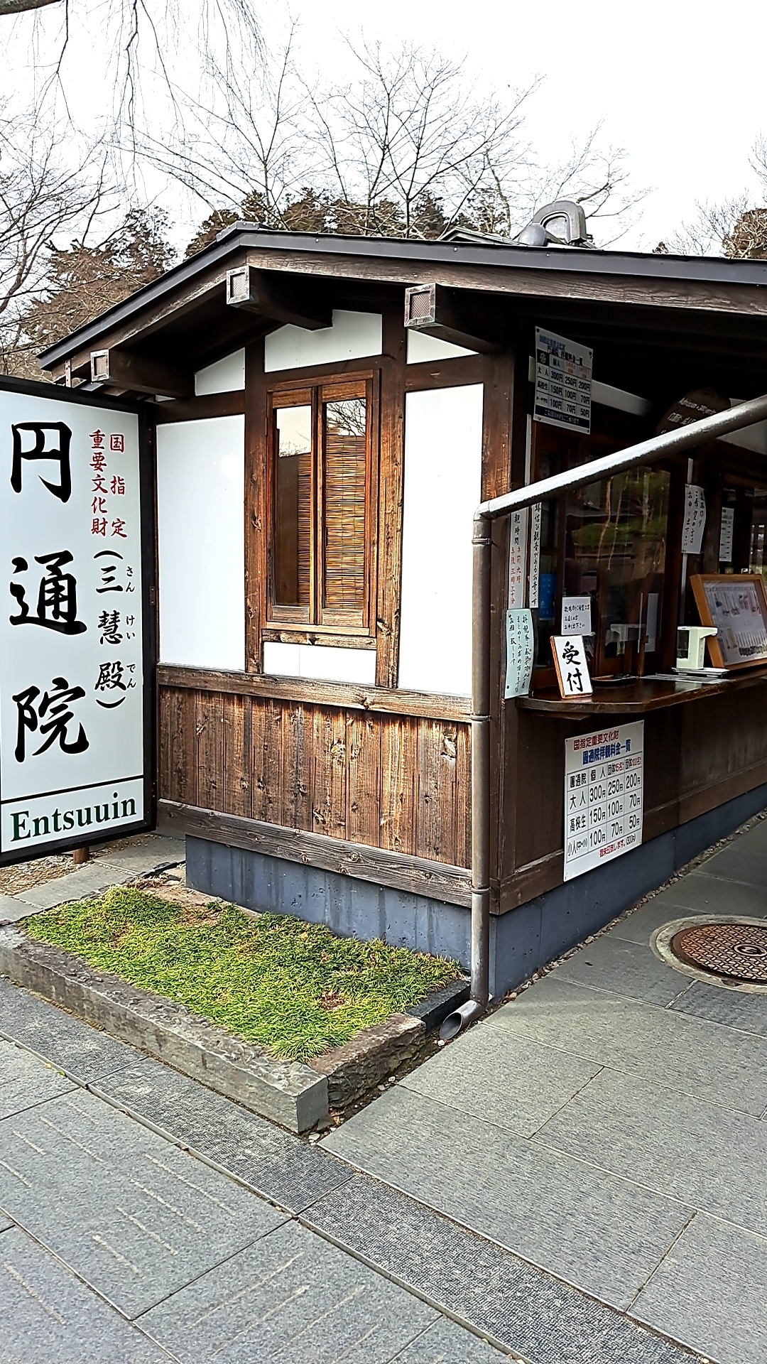 お寺の方に東日本大震災の津波について尋ねてみると、海から非常に近いのに、入口の券売所のところまでしか津波が来なかったそうです。