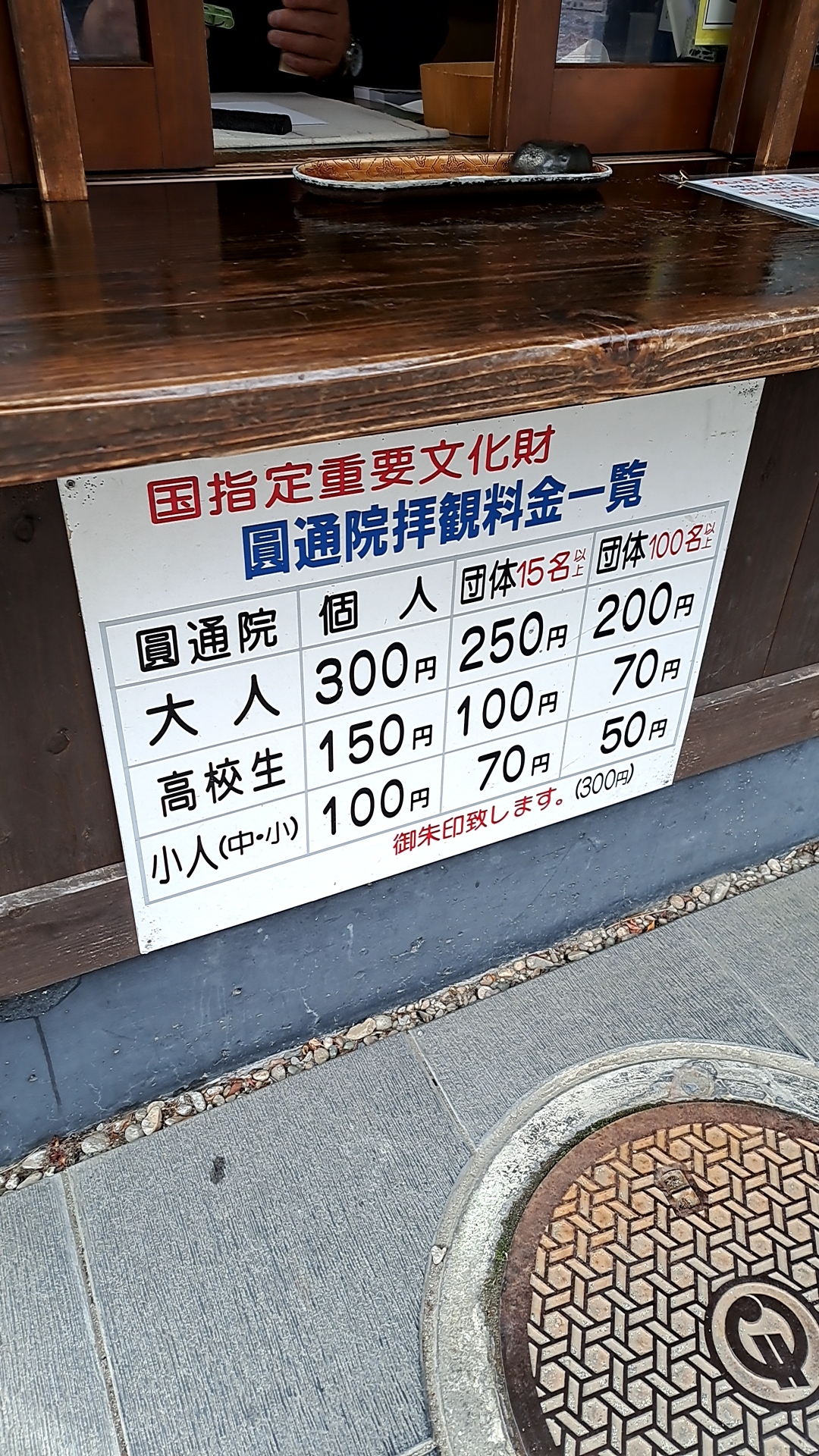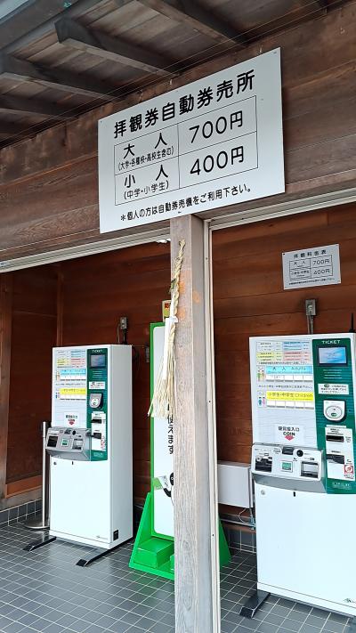 長い石畳の参道の先に自動券売所があり、拝観券を購入します。