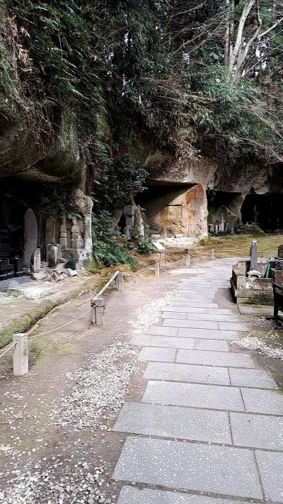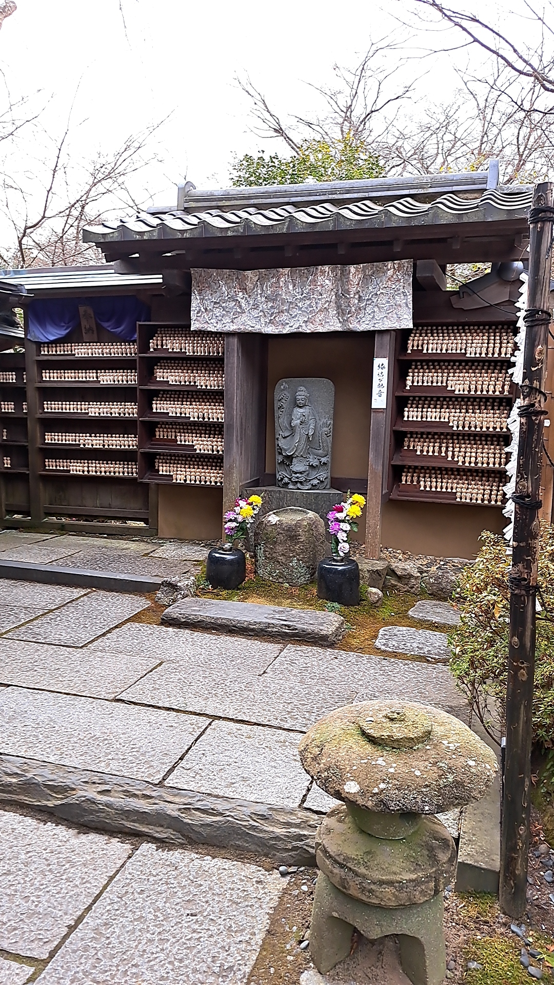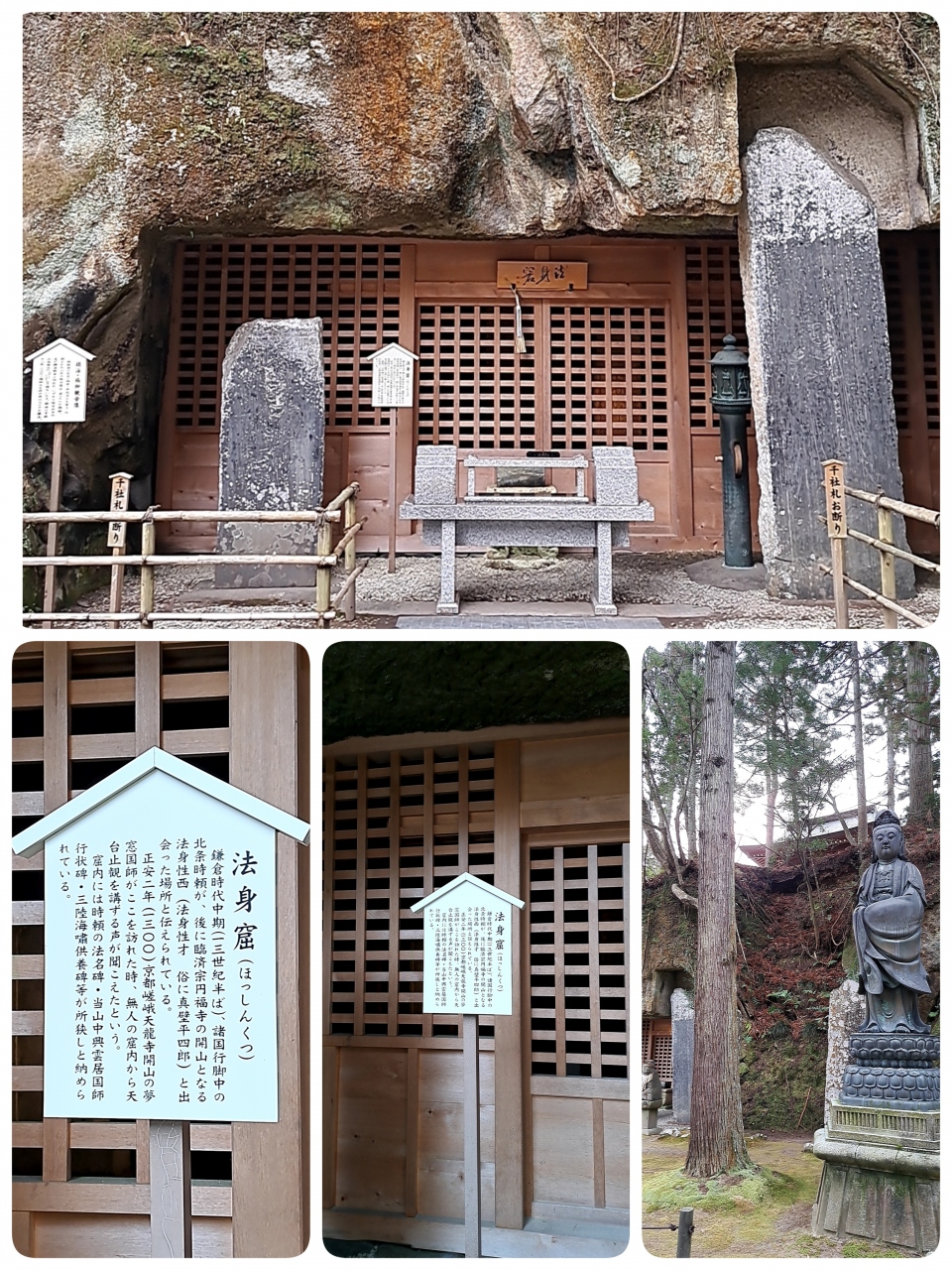 入って左手には、たくさんの供養塔が納められている岩窟「法身窟」があります。