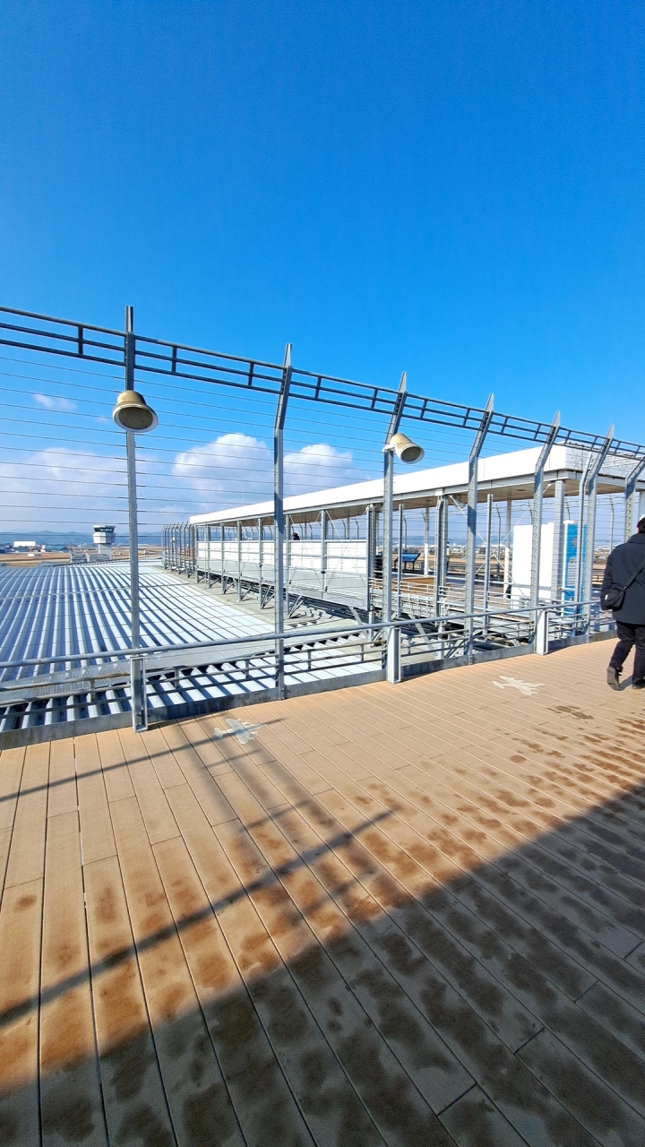 思っていたよりも小ぶりなテラスでしたが、滑走路が一望できて、飛行機の発着陸を眺めて時間調整するには良いでしょう。