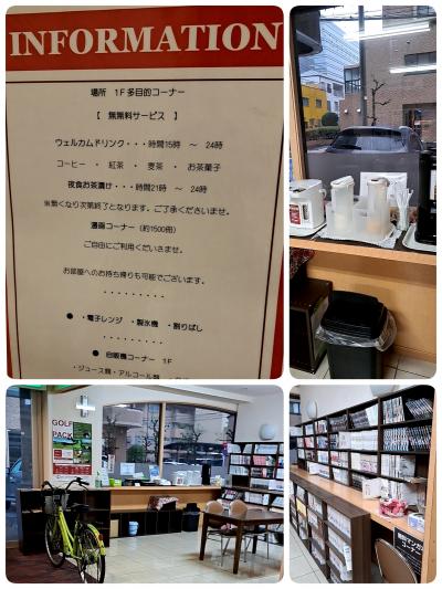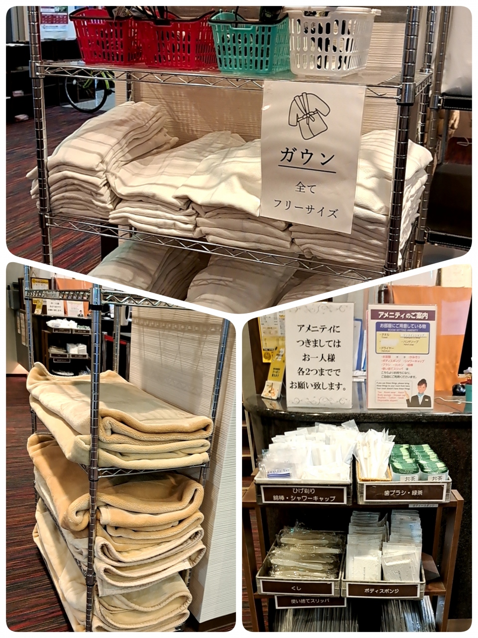 ホテル自体はとても古びておりますが、大浴場(サウナあり)があったり、朝食は会場の改装のため弁当ですが、そこそこ美味しいかった。また、1Fの多目的ルームでは、漫画本があったり、フリードリングがあったり、夜間はお茶漬けも食べれるようになっており、サービス面でかなり頑張ってる感がありました。