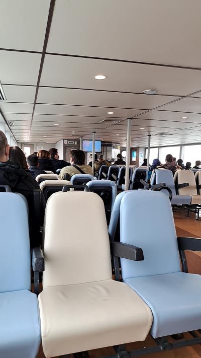 なお、今回利用した観光船「仁王丸」は新造船で大きな船だったので、船内の自由席でも窓側の席に座ることができました。