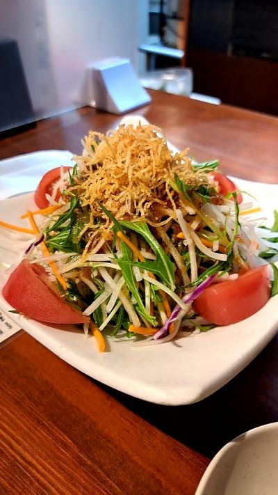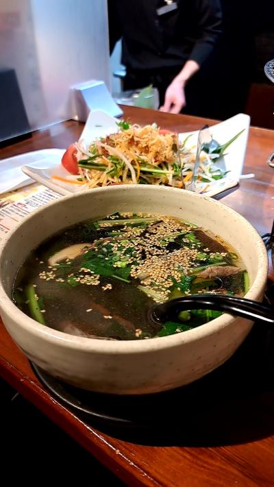 お通しの「枝豆」の他に、「牛すじ煮込み」「ぐらサラダ(ハーフ)」「わかめスープ」を注文。出てきたらビックリ。すべて思っていたよりも一回りボリュームがあって、もうこれだけでお腹満腹になりそうです。