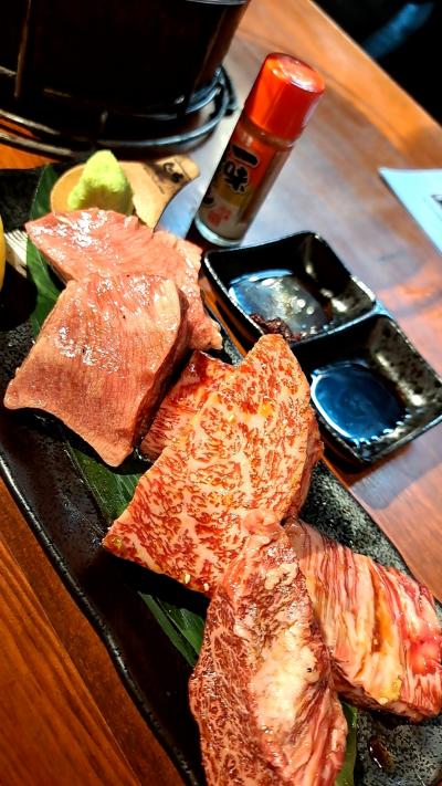 メインの看板メニューである「ぐら三種の神器盛り」を注文したら、国産の美味そうなタン・ハラミ・ロースの三種盛りで、それぞれ大きな塊2個ずつ出てきました。