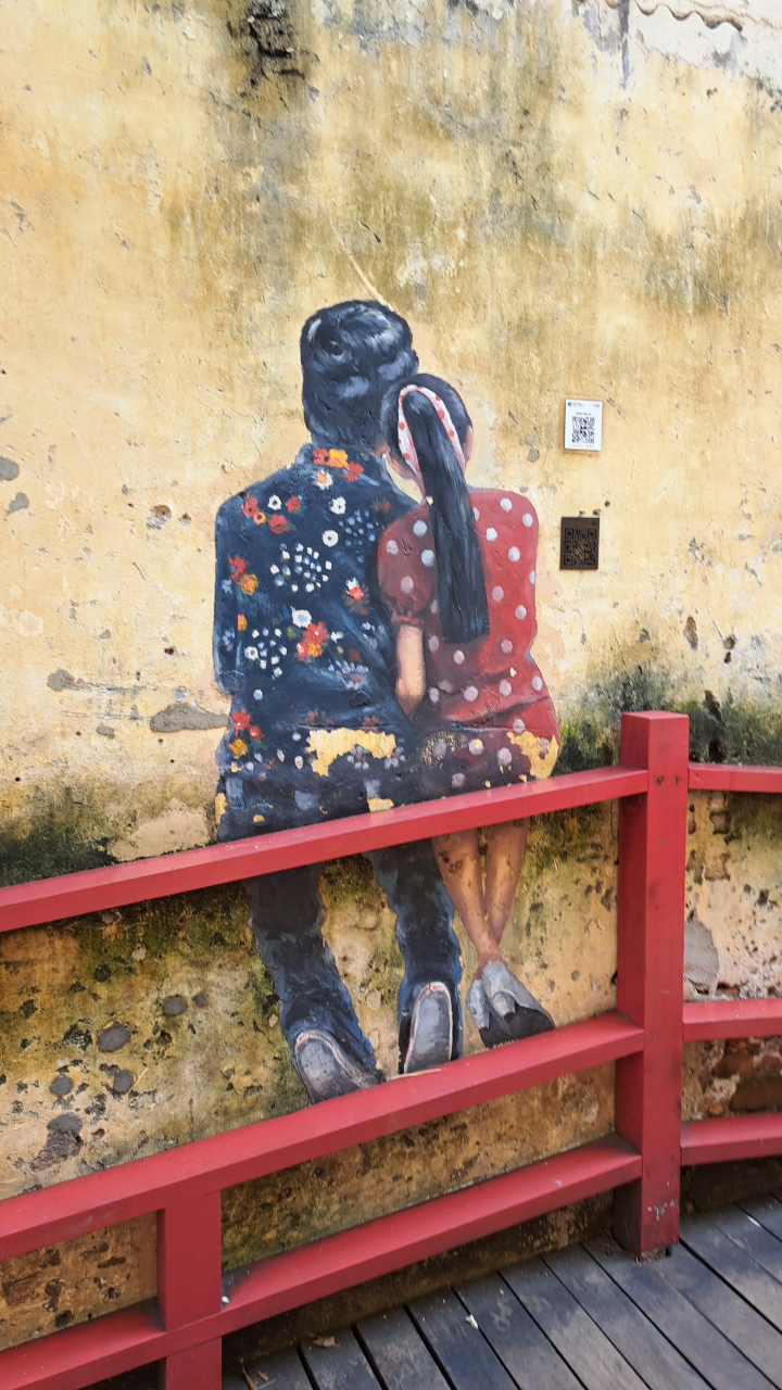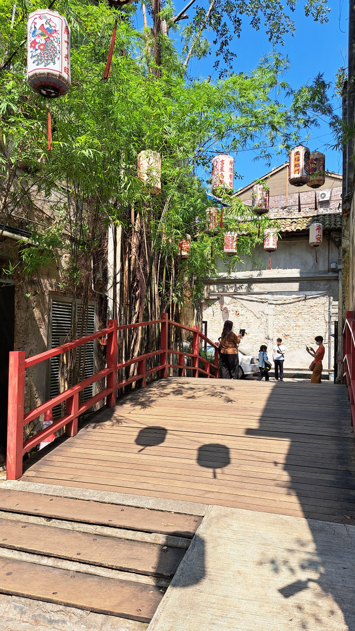 入口の赤い橋を渡ると、左右が行き止まりになった裏路地。いくつものウォールアートが描かれてます。