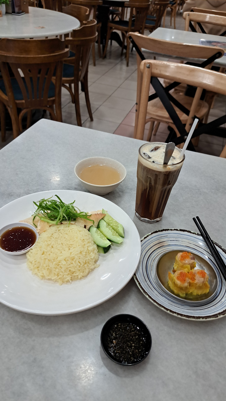 「蒸し鶏のチキンライス」と「焼売」と「アイスコーヒー」を注文。