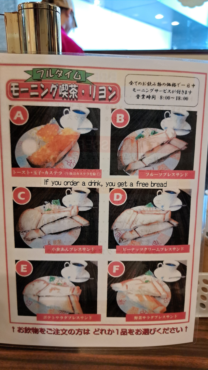 名古屋のモーニングは有名ですが、こちらはフルタイムモーニング。。。もうモーニングっていう必要ないように思うが、、、