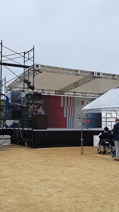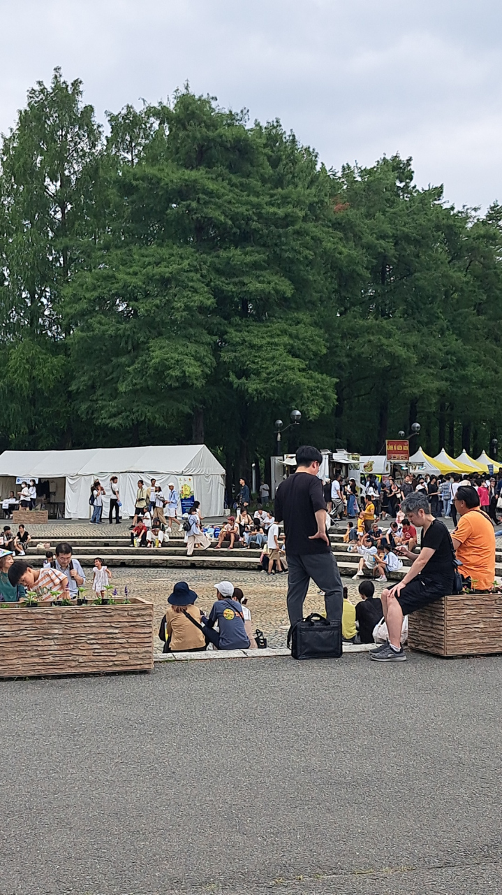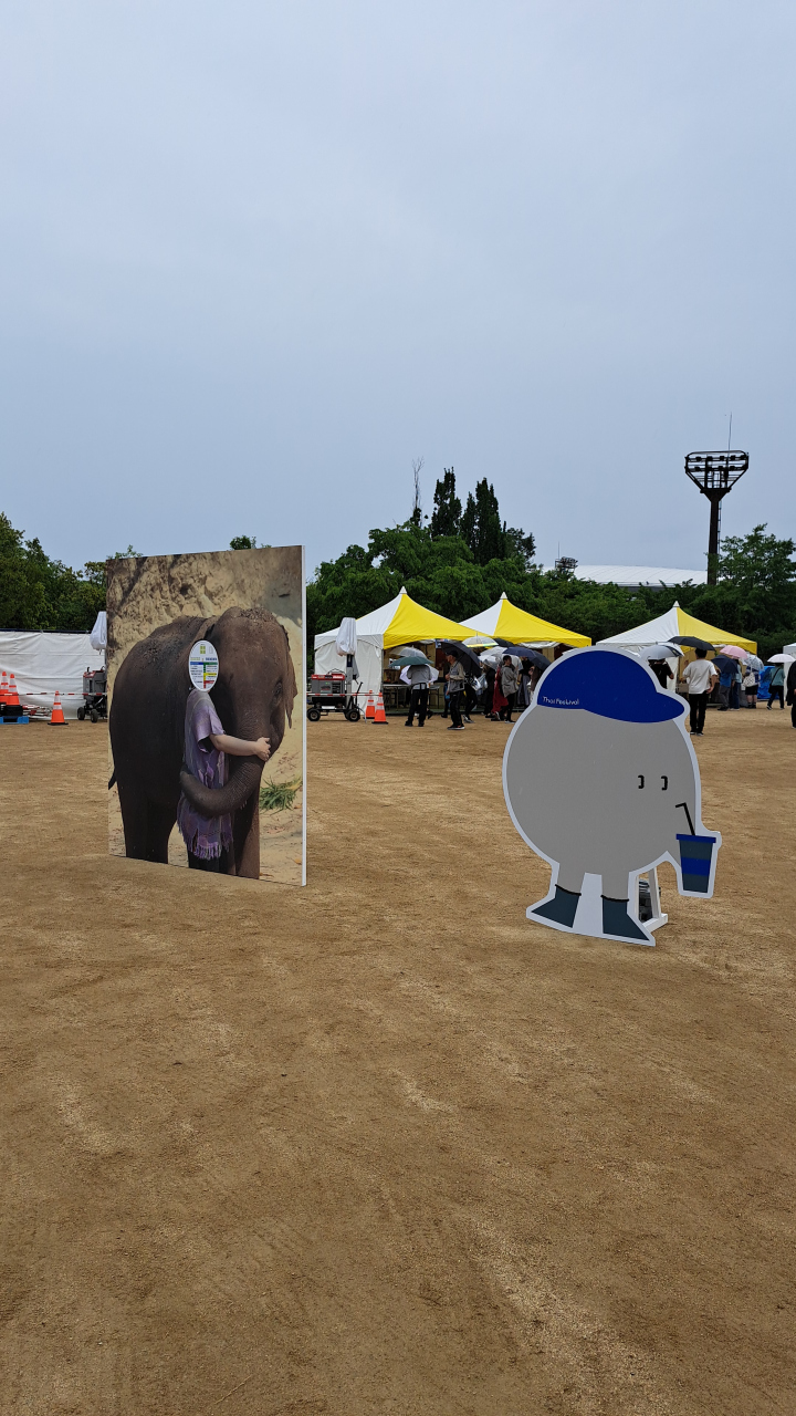 大きな公園内でイベントが行われていたが、残念ながら雨のため、地面はぬかるんで歩くのも不自由でした。