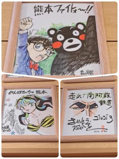また駅舎内には、南阿蘇鉄道の全線復旧を記念して、有名人の色紙や、漫画家のサイン色紙がずらりと飾られており、これらを見てるだけでも楽しくなる。