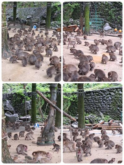 子猿がとても愛らしい。餌やりタイムの沢山のお猿さんには圧倒されます。