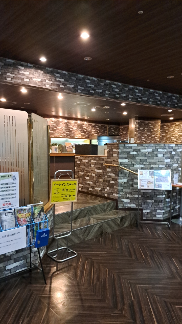2階にフロントがあり、フリードリンクサービスやアメニティ類も揃ってました。