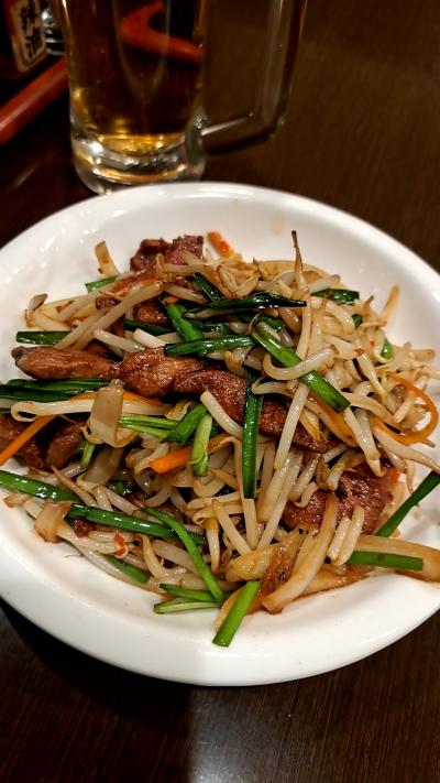 とりあえず、生ビールセット:1,180円を注文。料理はいくつか種類があるが、「ニラレバ炒め」と「焼き餃子」をチョイス。「チャーハン」を別注。