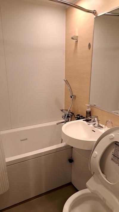 お部屋は、ちょっと古くて狭い感じは否めませんが、必要なアメニティ類や、ドライヤー・セキュリティボックス・冷蔵庫・TV(GoogleTV)が揃っており、また風呂もシャワーだけですが、湯量・温度も問題ありません。