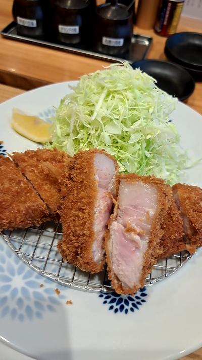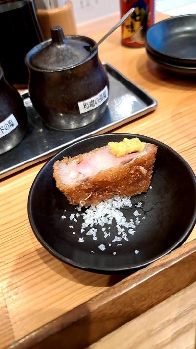 肉厚のあるトンカツで、脂身は少なく、衣はサクサク。トンカツソースもあったが、素材の味を楽しむには、3種類の塩で頂くことをおススメします。