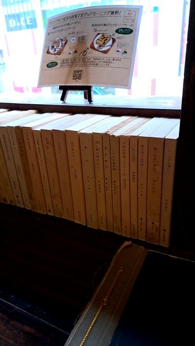 カウンター席には、店名の「青山文庫」の通り、文庫本がズラリと並んでました。