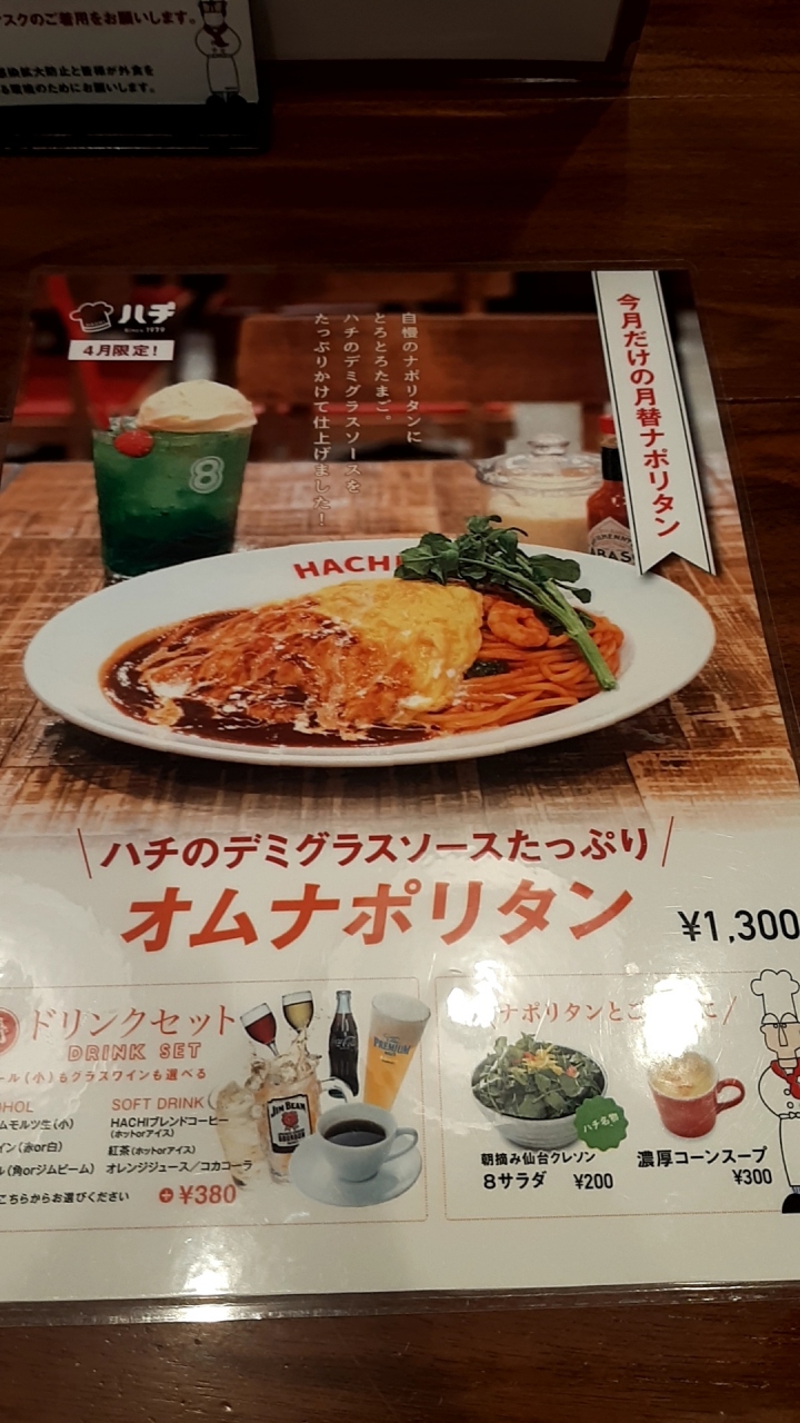 「ハンバーグナポリタン」が定番メニューとして有名ですが、月替ナポリタンを注文。1,300円は少し高いかなと思いましたが、結構ボリュームあって美味しかった。