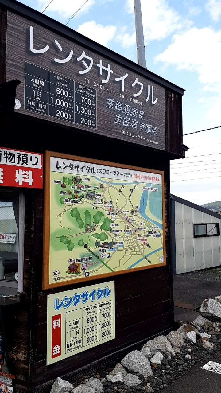 平泉駅のすぐ横にレンタサイクルのお店があります。