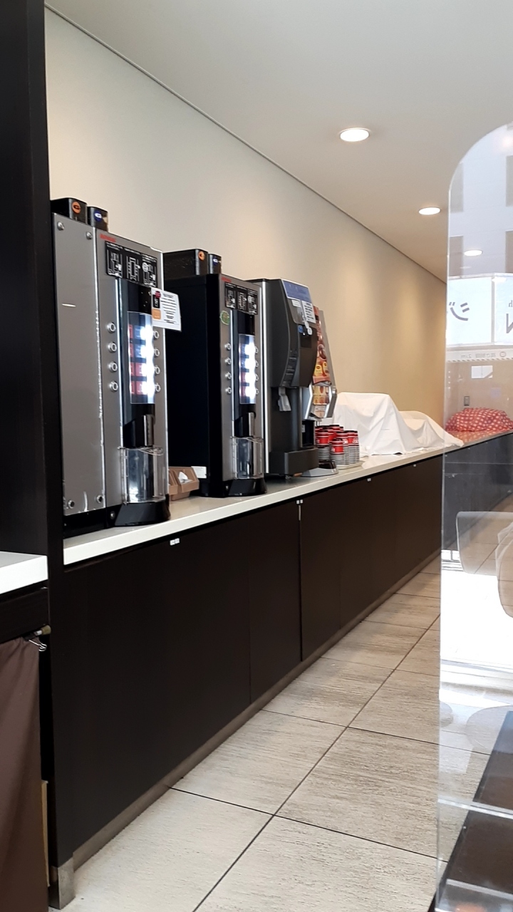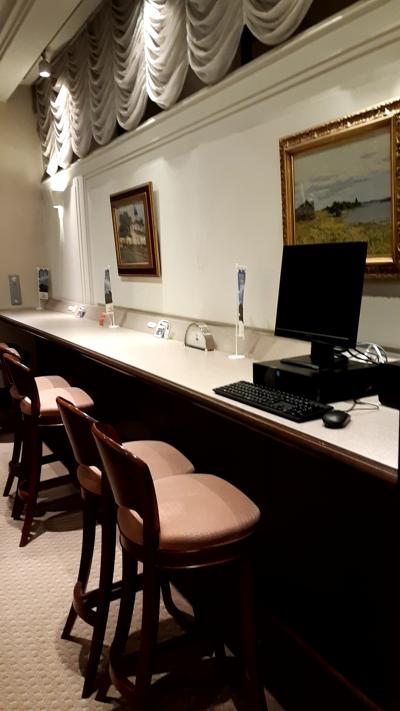 ホテルフロントの近くには、宿泊者が利用できるパソコンや、洗濯乾燥機や、無料のドリンク自動販売機などがあります。