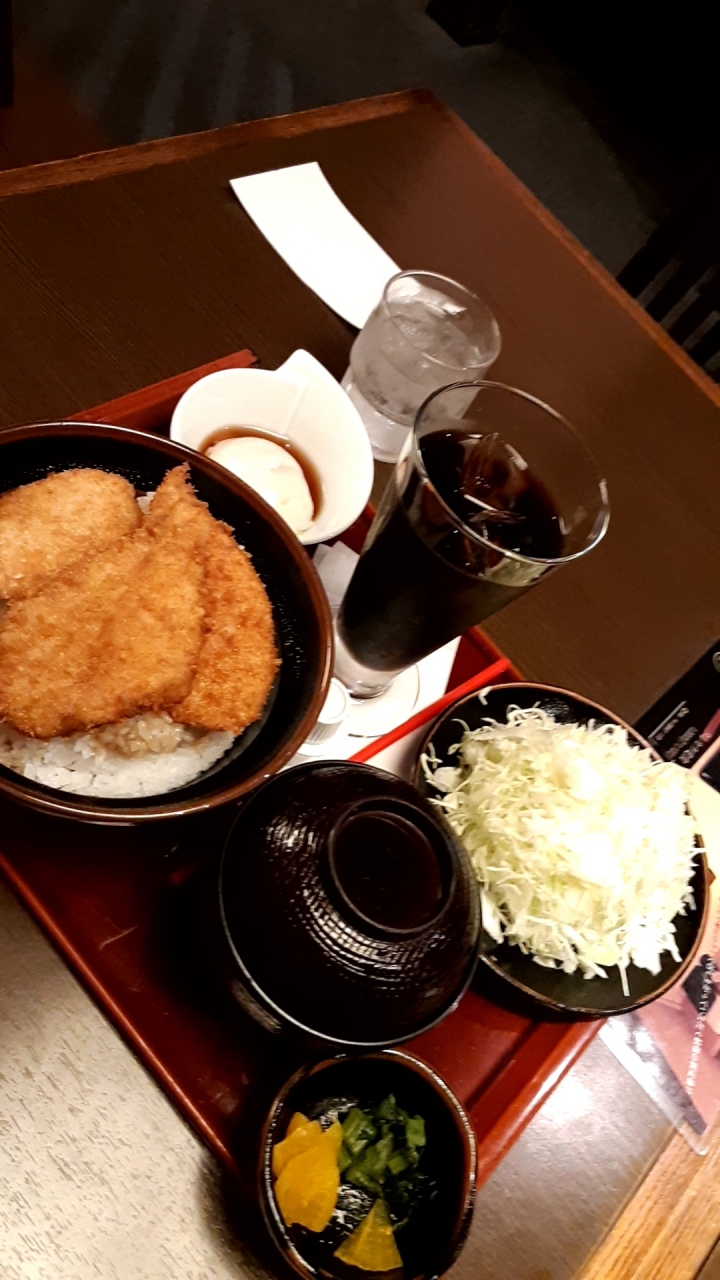 メインのかつ丼は、薄いカツに少し甘めのタレがマッチして確かに美味しかった。