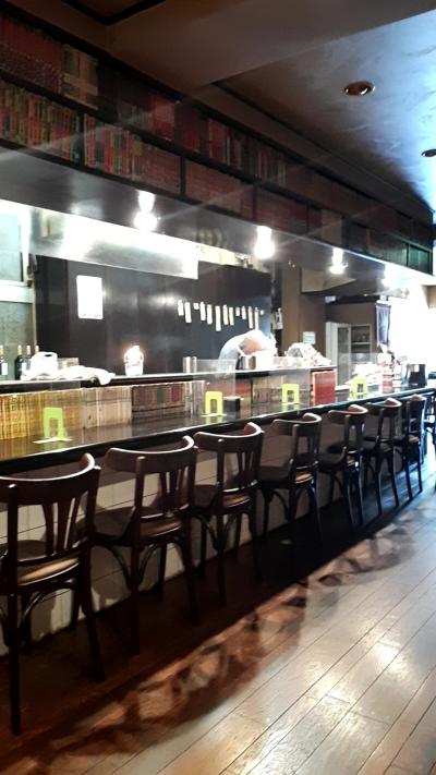 ちょっと早い夕食だったのですが、満席だったせいで、少し待たされてカウンターに案内された。