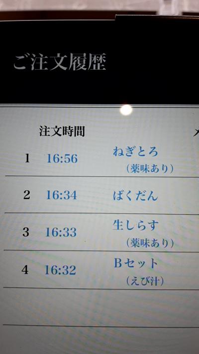 この店は、回転も良く、店員さんも手際よく対応しているんで、大勢で行くと席が空くまで待たされるかも知れませんが、一人だと案外すんなり入店できました。- 旅行時期