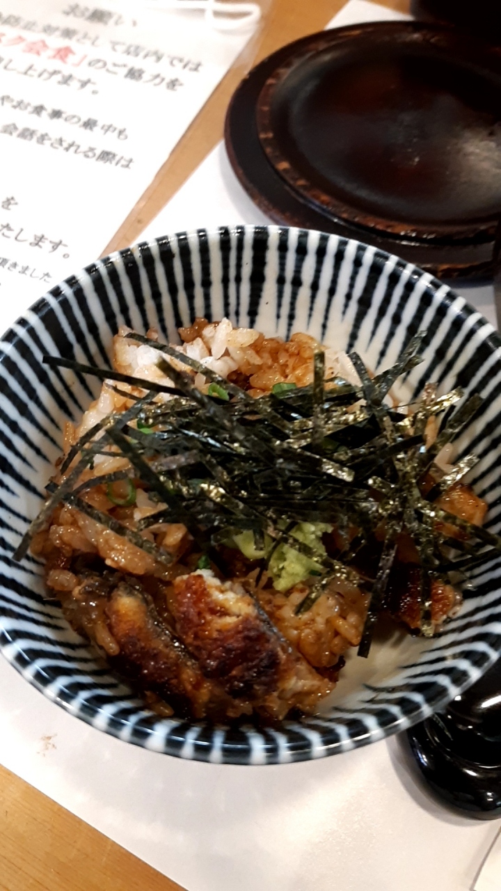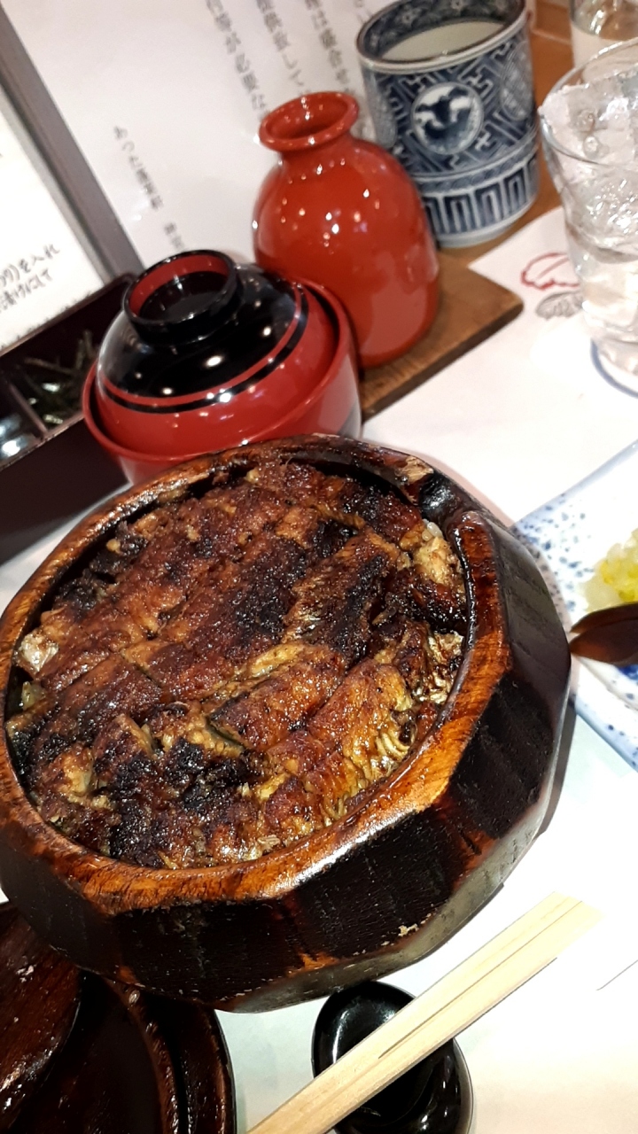 名物の”ひつまぶし”は少々お高いし、最初にお櫃の大きさを見ると少なそうに思うのですが、作法に従って食べると、最終的にお腹一杯になります。