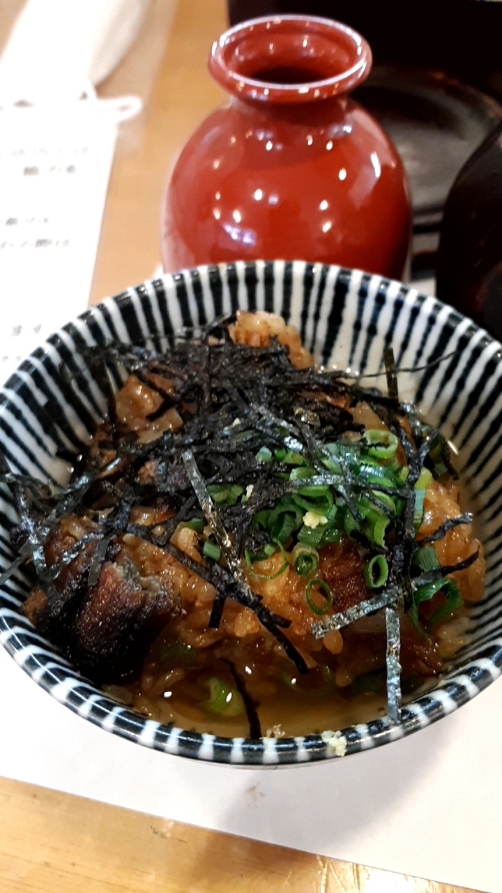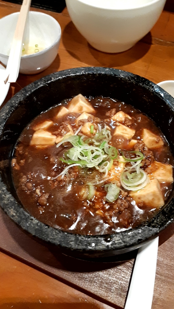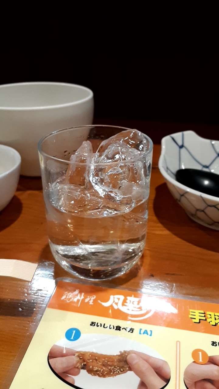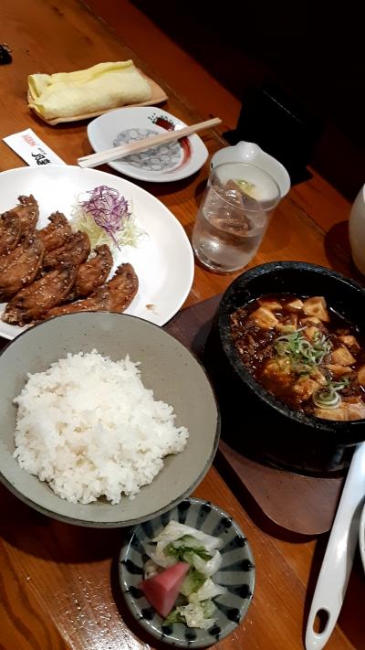 トホホと思いつつも、目当ての「手羽先」を二人前と、石焼麻婆豆腐とメシ。焼酎ロックを注文。