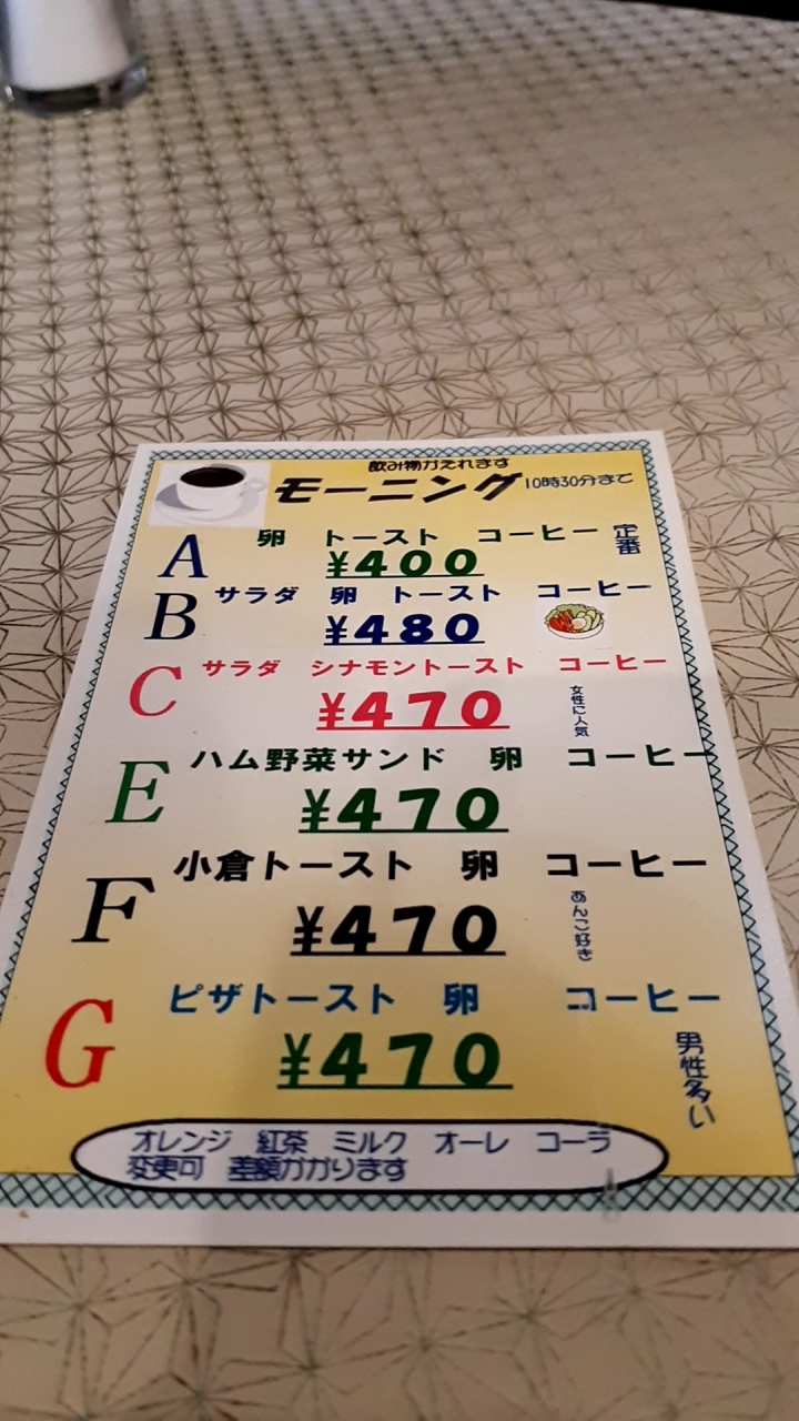 モーニングは特筆するものではありませんが、店はとても古びた感じですが、落ち着いた雰囲気で、老齢のご夫妻が店を切り盛りしていました。